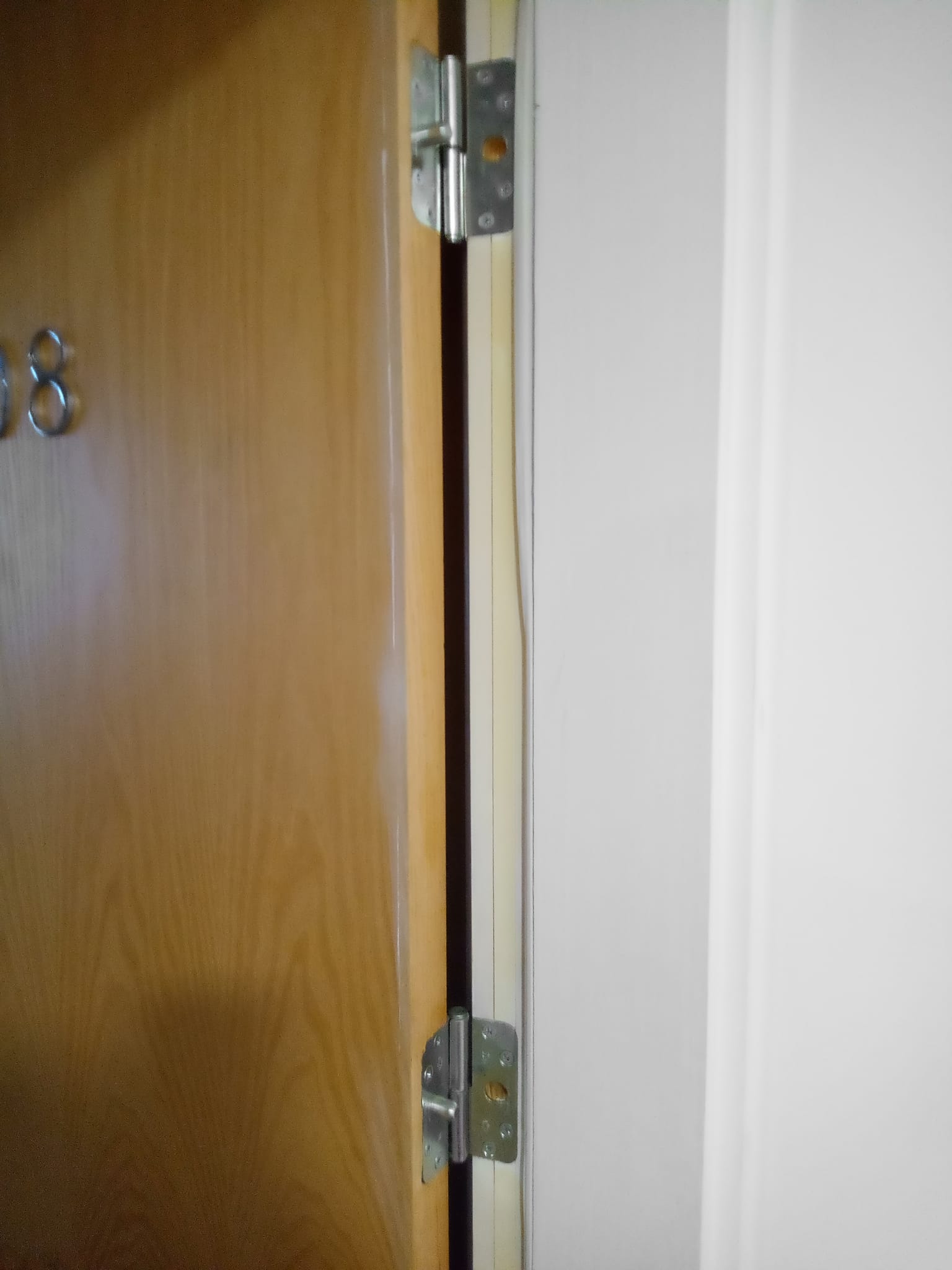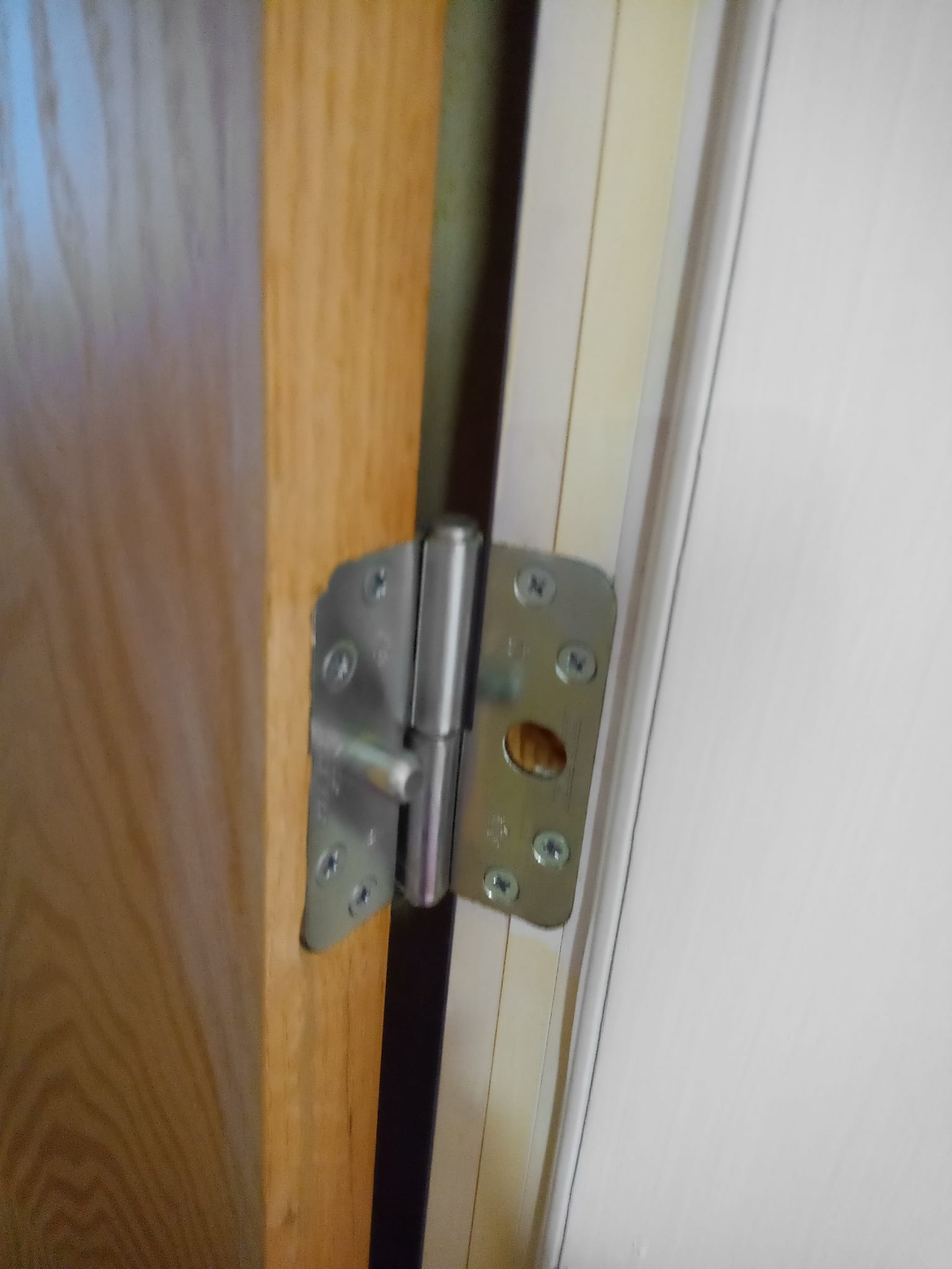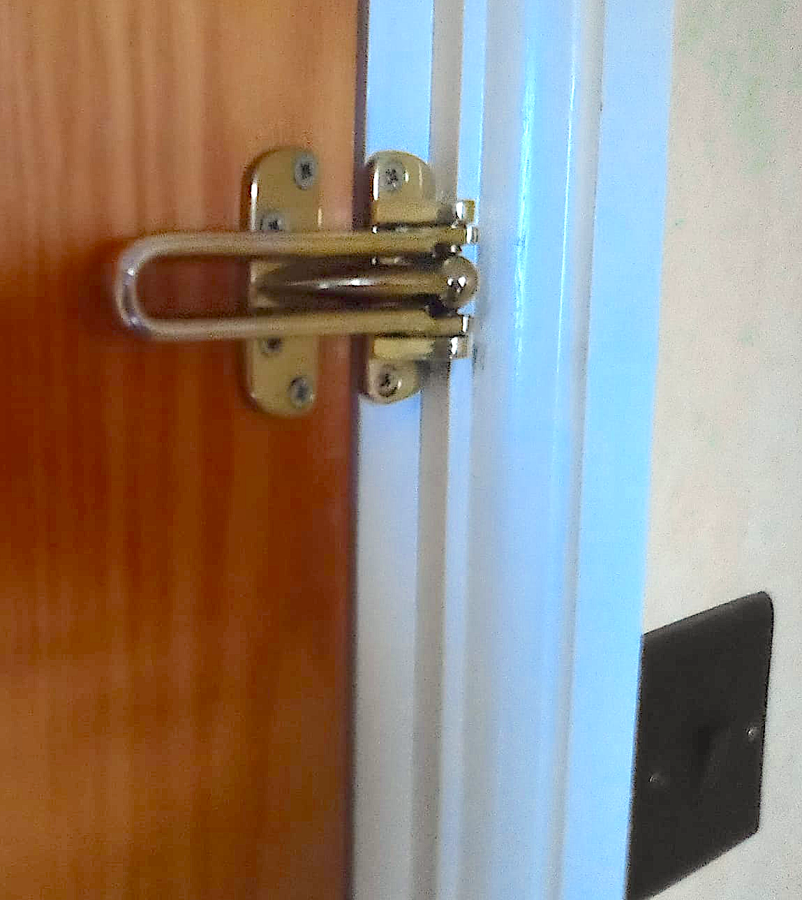 The peek hole, that you see on top of this page, gives you a first impression of who’s knocking. With this simple and effective gadget you may  half-open the door to say a few words. It also gives you an easy and effective way to keep the door securily shut without having to lock it when you’re at home.