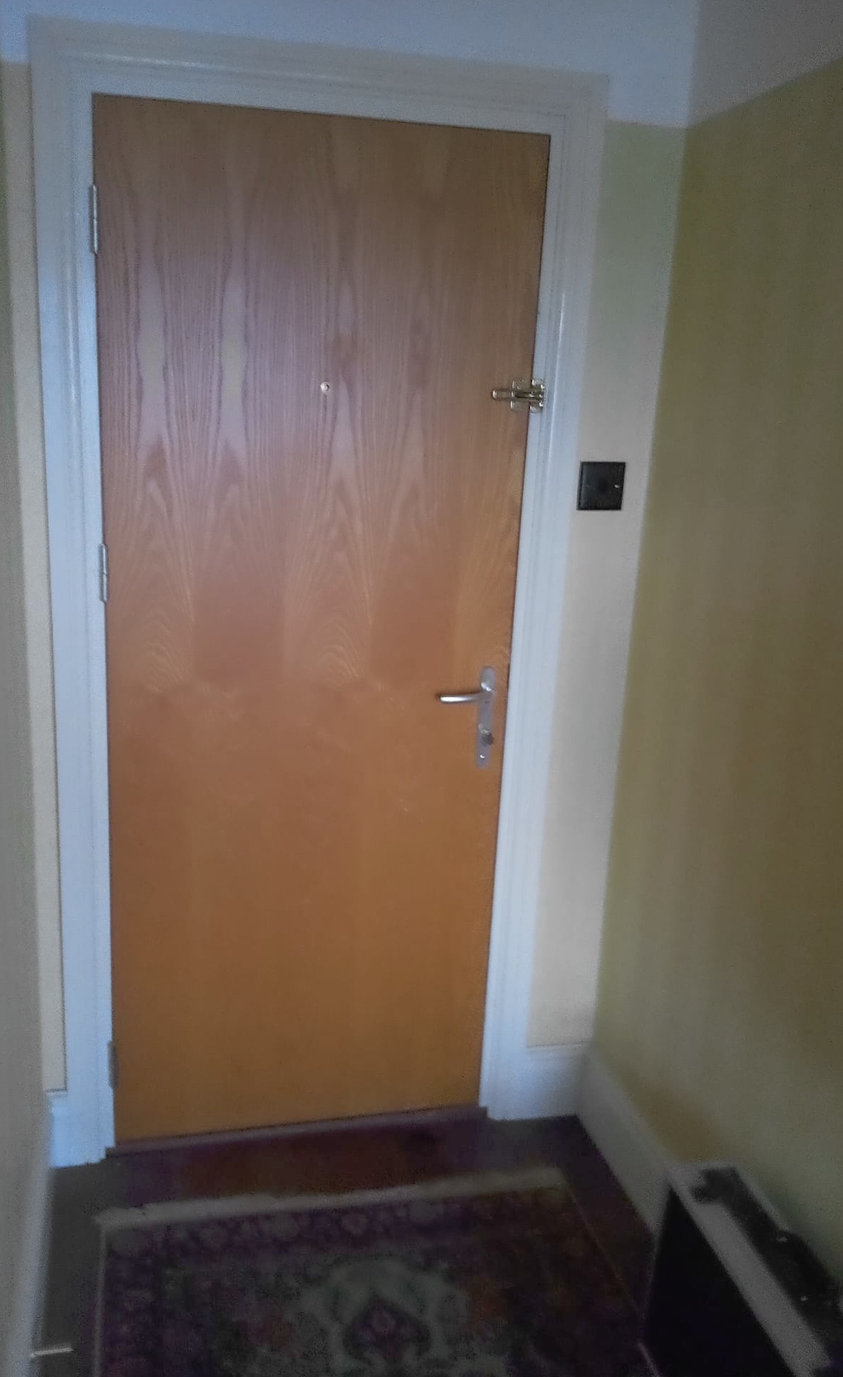 This is the fire-secure front door, solid to the core with no less than three units to protect you from unwelcom visitors.